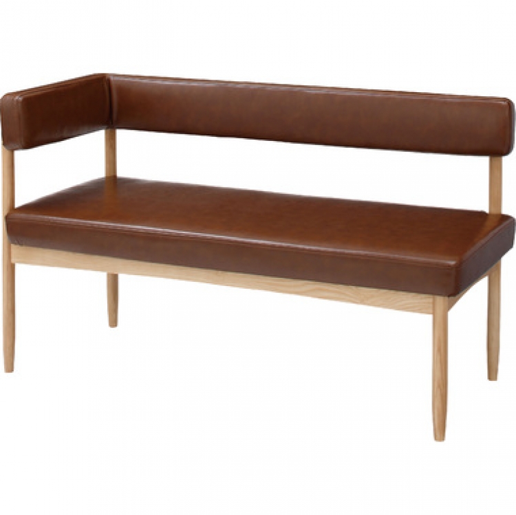 ダイニングベンチ(背付・片肘)ブラウン