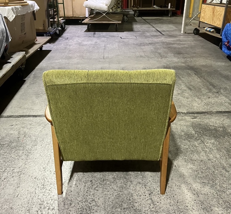 座面:ウェービングベルト/ウレタンフォーム(グリーン) 背面:ウレタンフォーム フレーム:天然木 脚部:天然木(ラバーウッド)
