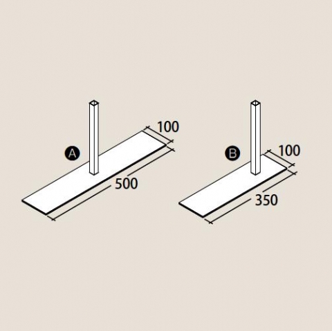 (A) W500 x D100 (B) W350 x D100