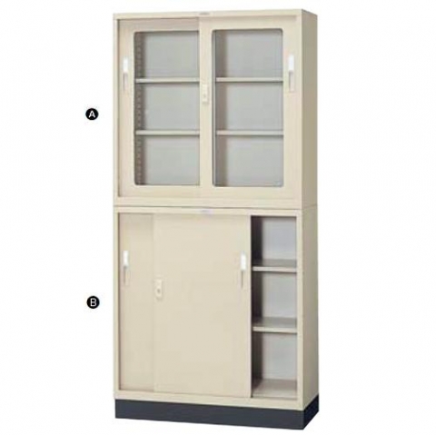 (A) ガラス引戸 (B) スチール引戸 棚2段