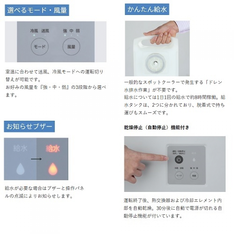 重量:41kg(タンク空状態) 電源:AC100V(50/60Hz) 消費電力:0.14/0.18kW 運転音:61/65dB(A) 風量:370/450㎥/h(強)