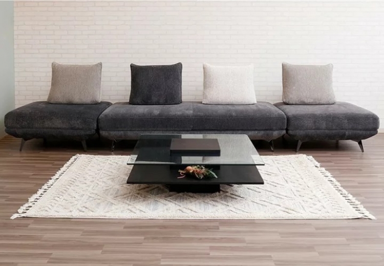 脚/スチール 張地/ファブリック(グレー) 背クッション 4個、肘クッション 1個付