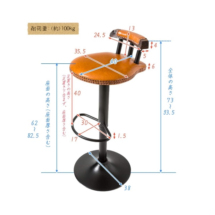 座部/フェイクレザー(レッド)、脚部/スチール(ブラック) 重量/約6kg、耐荷重約100kg